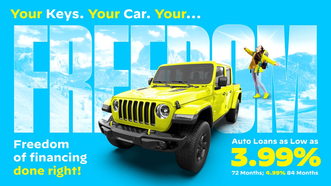*APR=Annual Percentage Rate. All loans subject to credit approval. Rates, terms, and conditions are subject to change and may vary based on credit worthiness, qualifications, and collateral requirements. 3.99% APR up to 72 Months OR 4.99% up to 84 Months on 2023 Model Year or newer. Minimum loan amount for this offer is $20,000.00. Minimum credit score of 650. Offer valid on new money only and cannot be used on existing First Capital Federal Credit Union loans. Valid on automobile and motorcycle purchases only. Maximum Loan to Value (LTV) on 72 Month Term will be 115% and the 84 Month Term will be 100%. Additional restrictions may apply. Estimated monthly payment of $15.65 per $1,000.00 borrowed at 3.99% APR for 72 months. Estimated monthly payment of $14.14 per $1,000.00 borrowed at 4.99% APR for 84 months. Cannot be combined with any other offer other than the FirstCapital Star Rewards® 3-star discount. Effective April 1 - June 30, 2026. Federally Insured by NCUA.