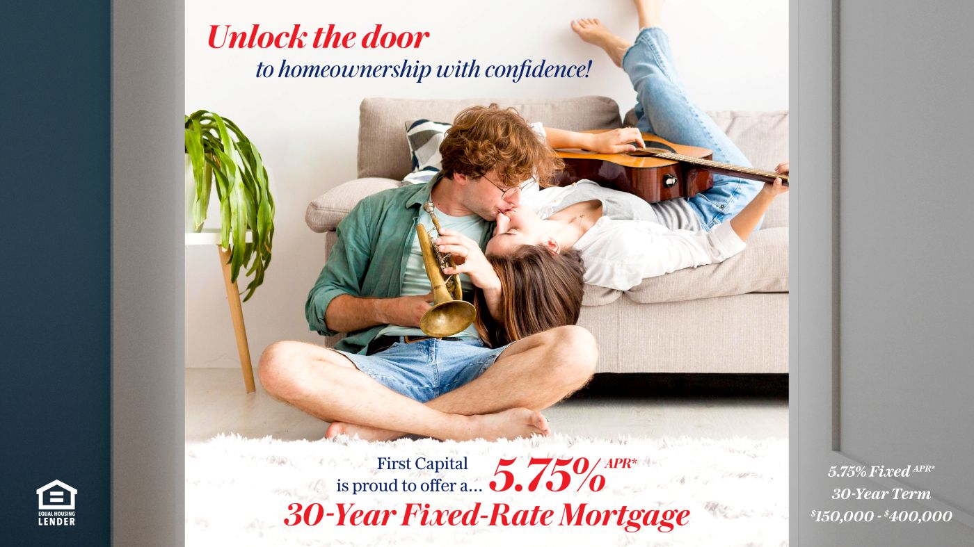 *APR=Annual Percentage Rate. All loans subject to credit approval. 5.75% APR applies to mortgages for 30-year fixed term. Minimum credit score of 700 to receive promotional rate. Maximum loan to value (LTV) not to exceed 80%. Minimum loan amount to qualify for this offer is $150,000.00, with a maximum loan amount of $400,000. Owner-occupied primary residence only. Only eligible for single-family, owner-occupied properties in the state of PA. No manufactured homes, second homes, business, or investment properties. First Capital Federal Credit Union reserves the right to end this promotion at any time. Offer valid on purchases or rate and term refinances only. Certain additional restrictions may apply. Rates, terms, and conditions are subject to change and may vary based on credit worthiness, qualifications, and collateral requirements. Other home loan products, rates, and terms are available. Cannot be combined with any other offer. Effective April 1 - June 30, 2026. Federally Insured by NCUA. Equal Housing Lender.